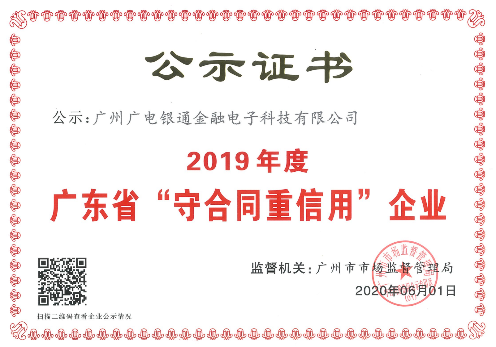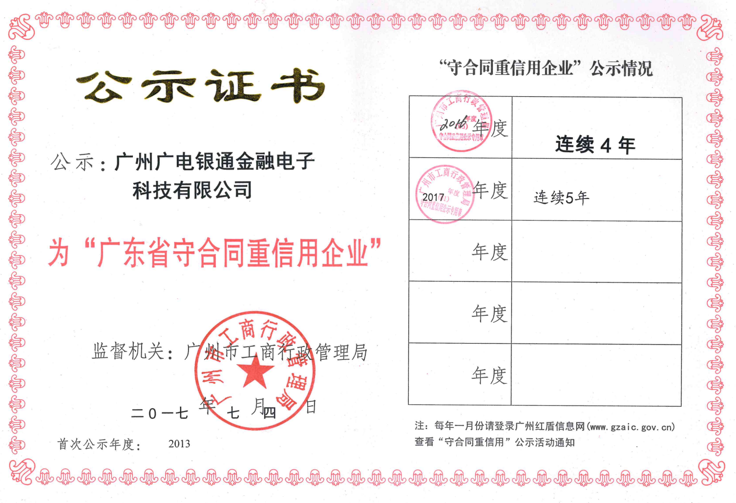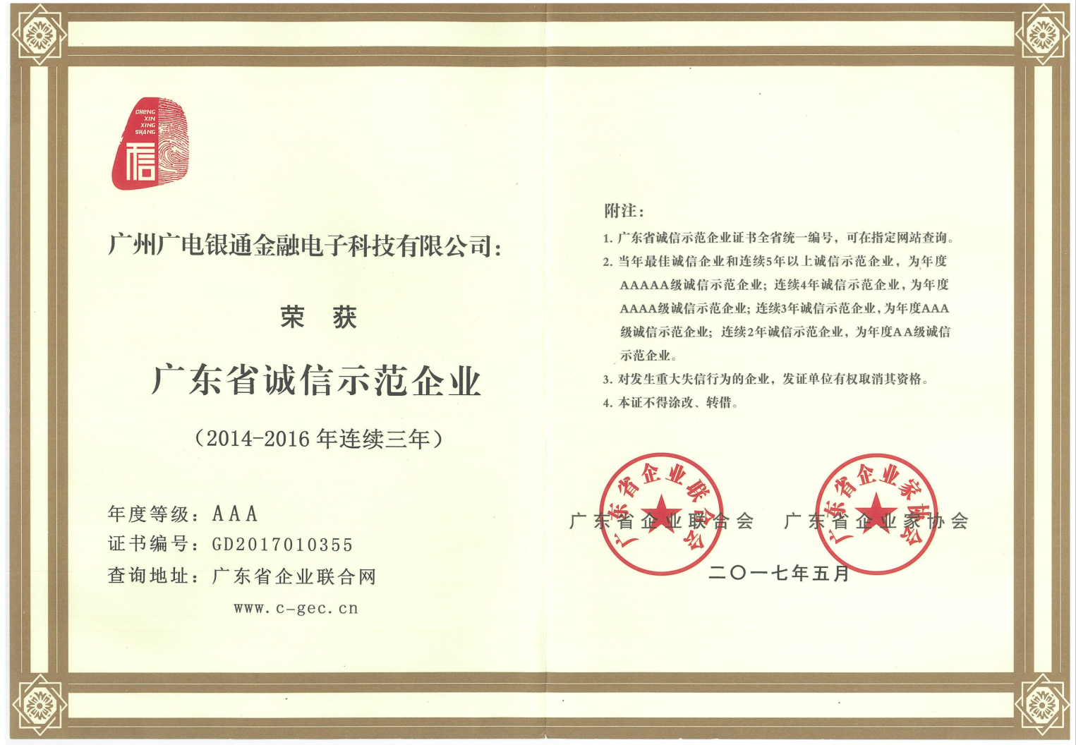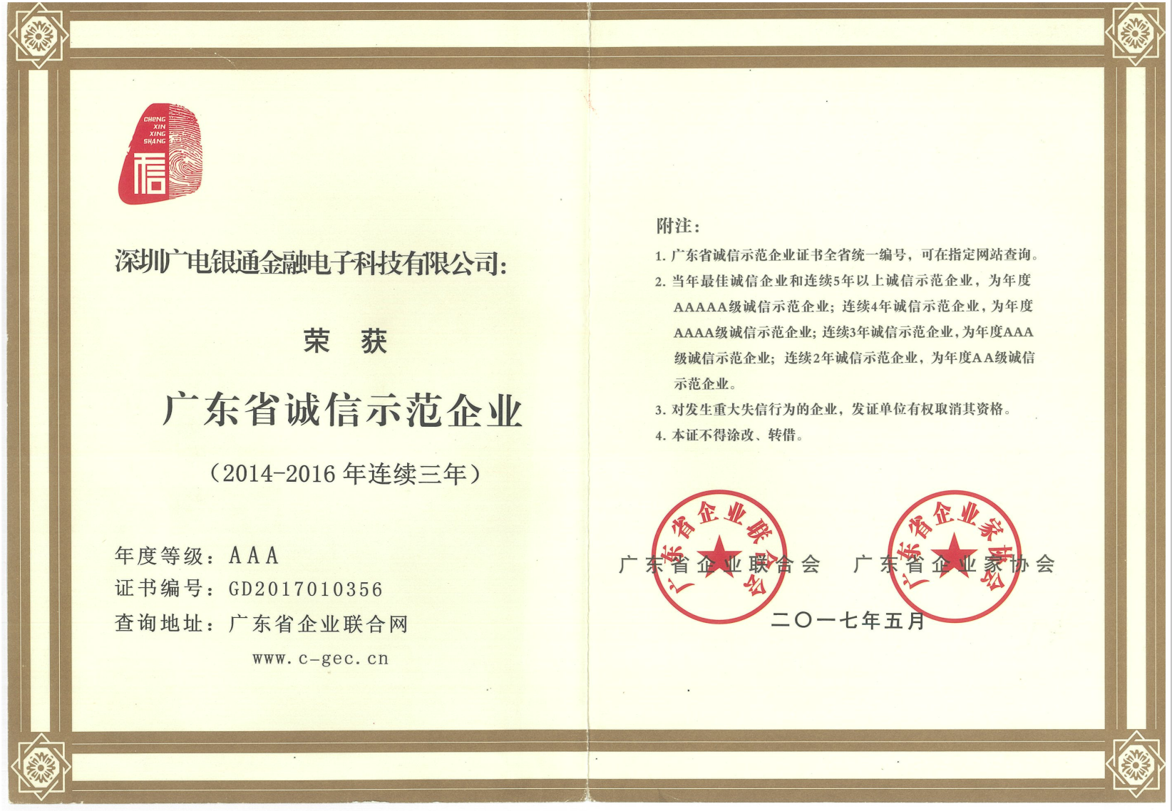 2016廣州省誠(chéng)信示范企業(yè) (深圳銀通)