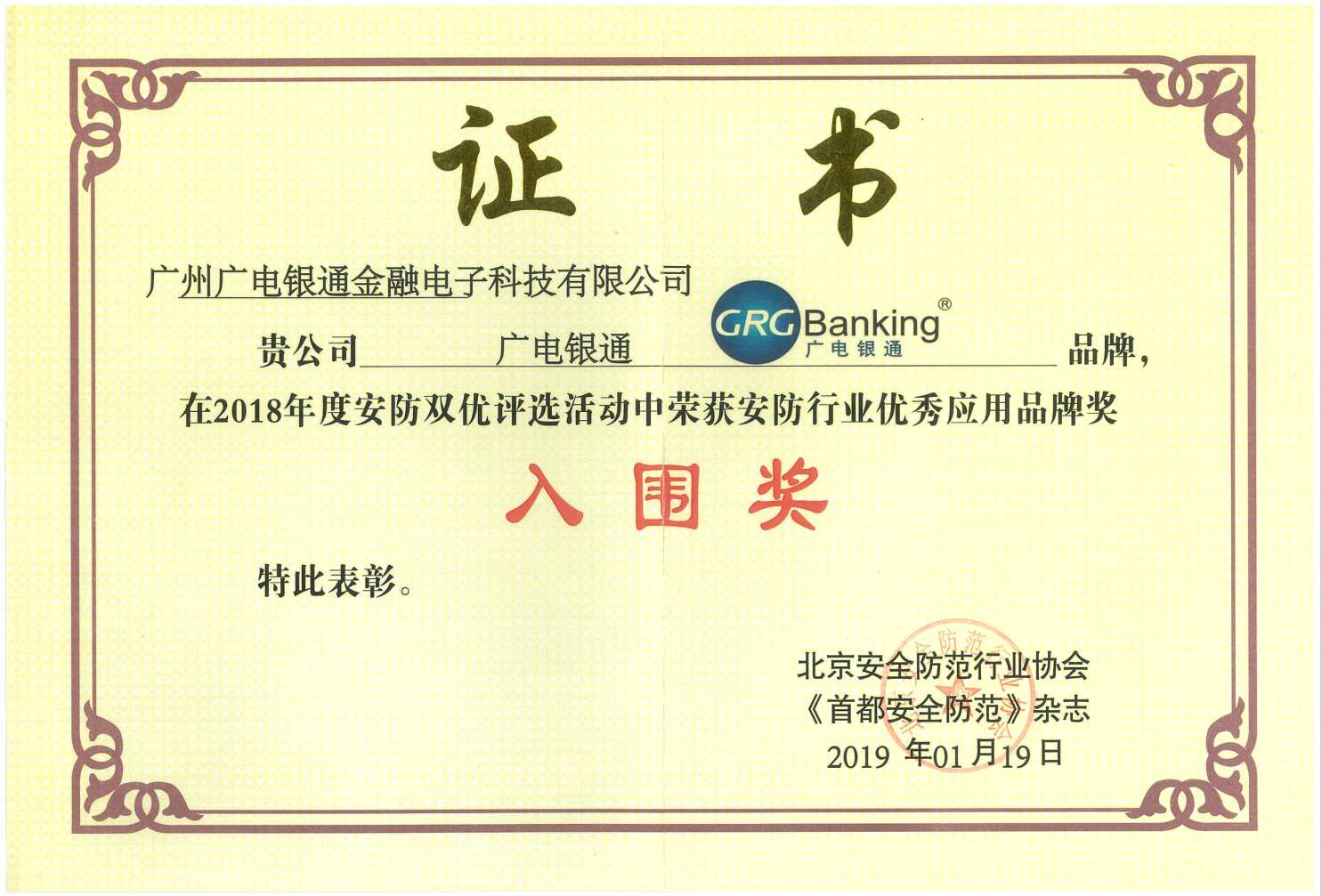 2018年度安防行業(yè)優(yōu)秀應(yīng)用品牌獎(jiǎng)入圍獎(jiǎng)