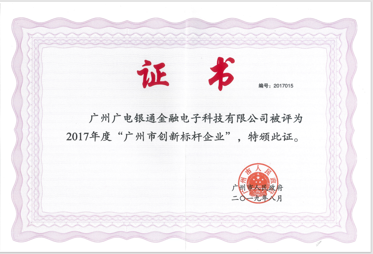 2017年度廣州市創(chuàng)新標(biāo)桿企業(yè)證書