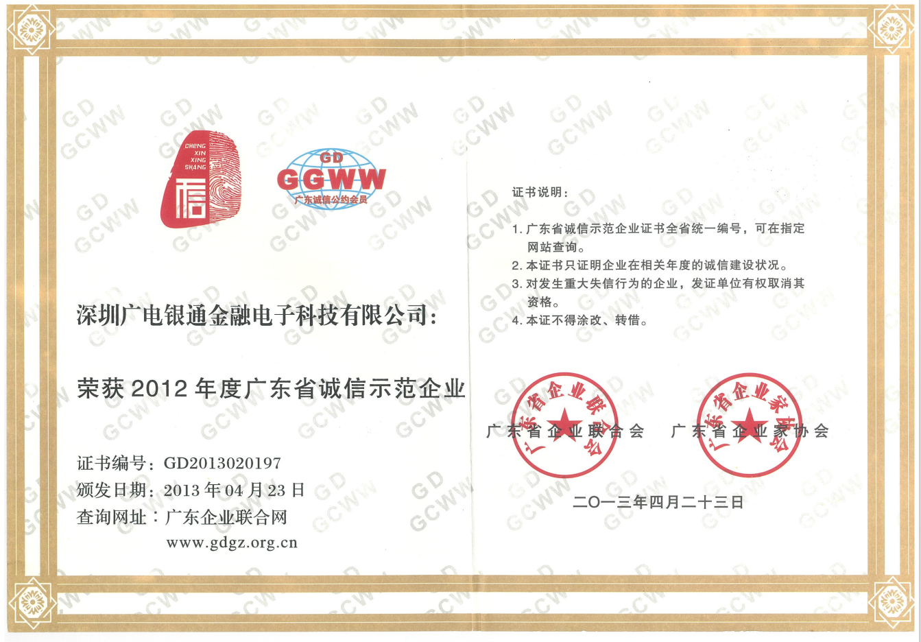 2013廣東省誠(chéng)信示范企業(yè)(深圳銀通)