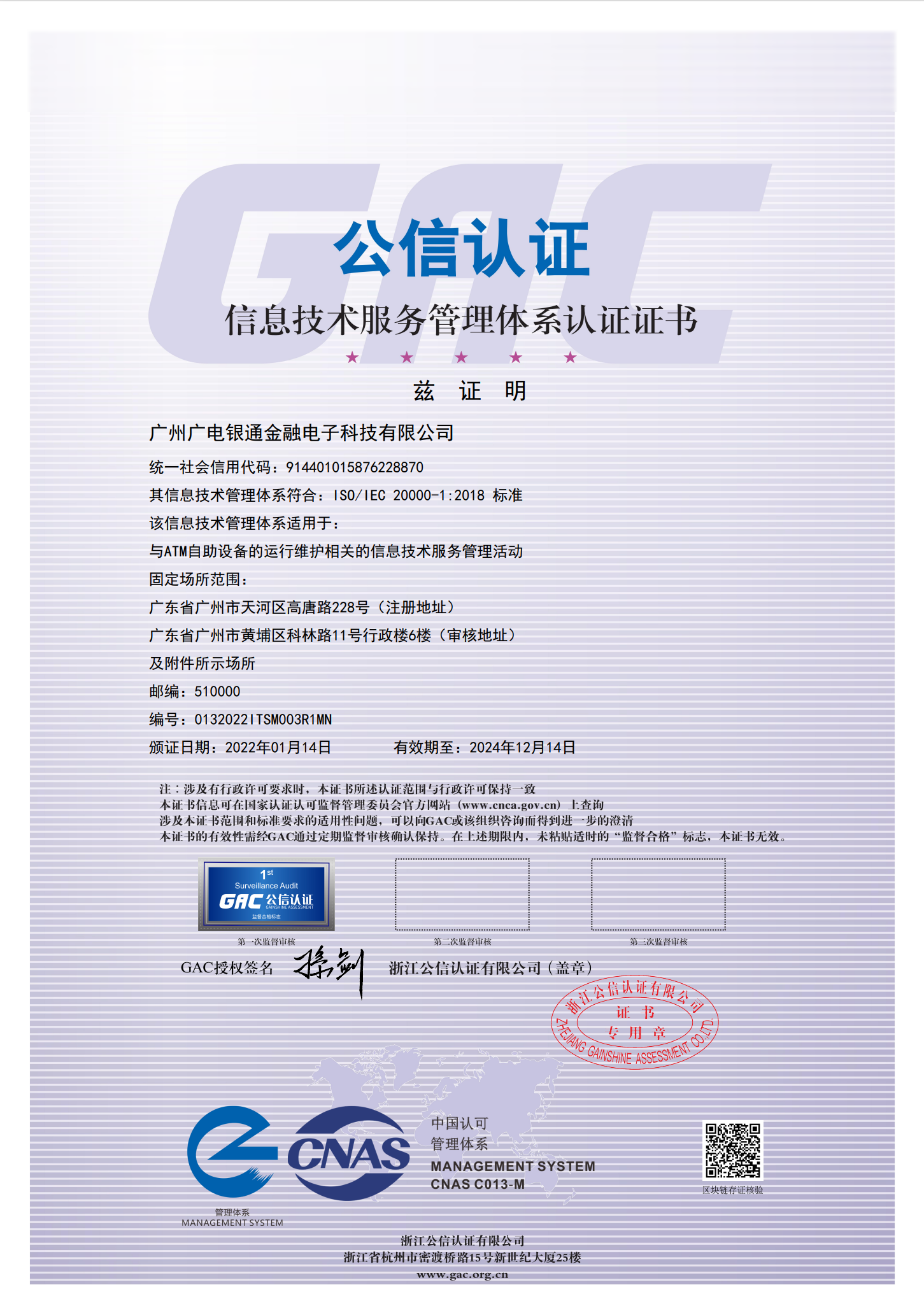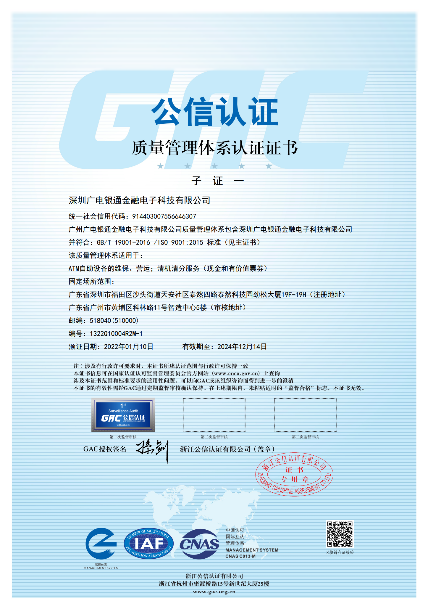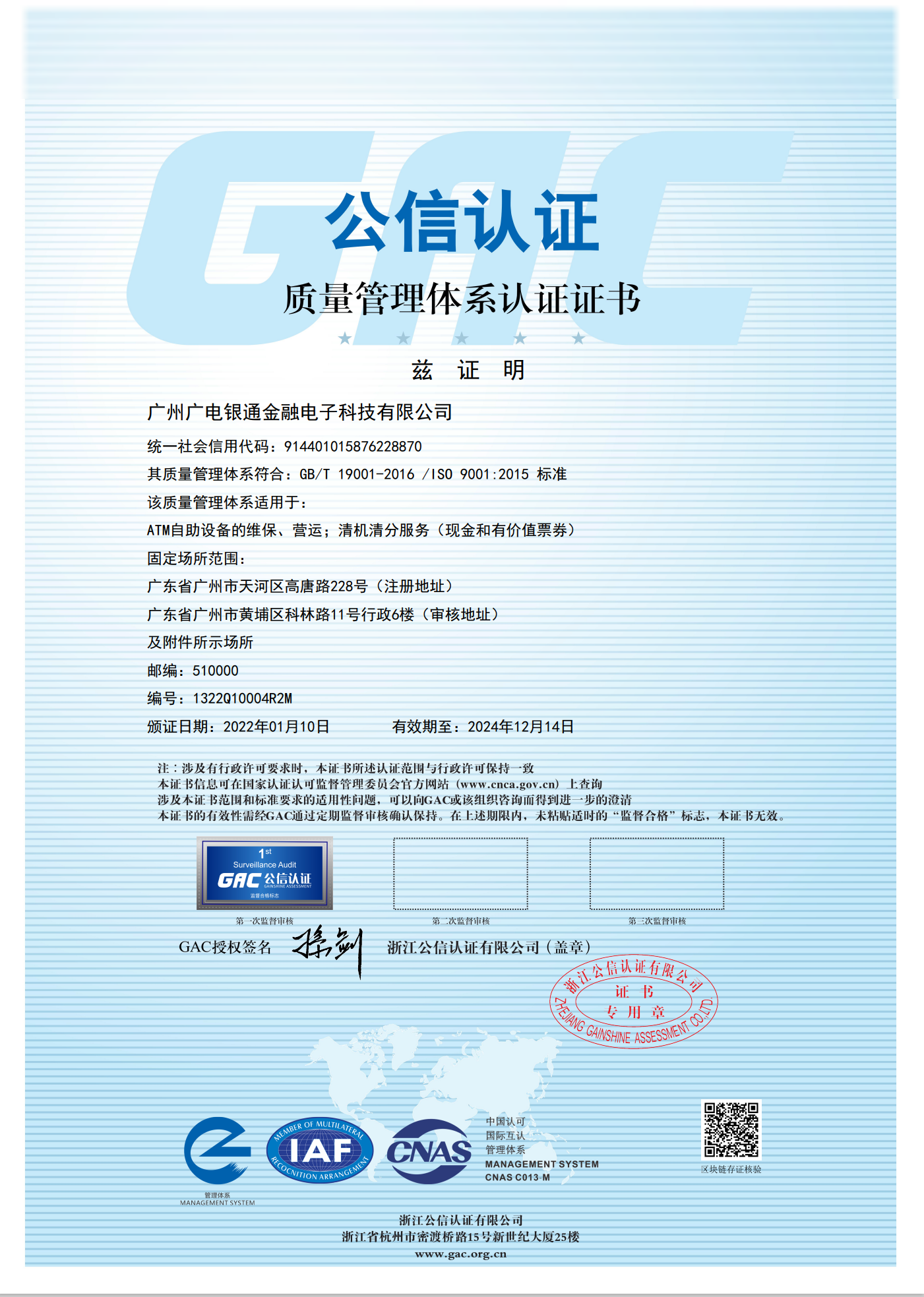 廣州銀通質(zhì)量管理體系認(rèn)證證書2023