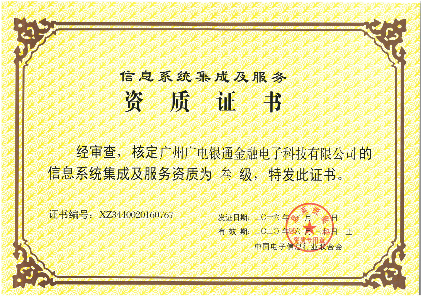 信息系統(tǒng)集成及服務(wù)資質(zhì)證書