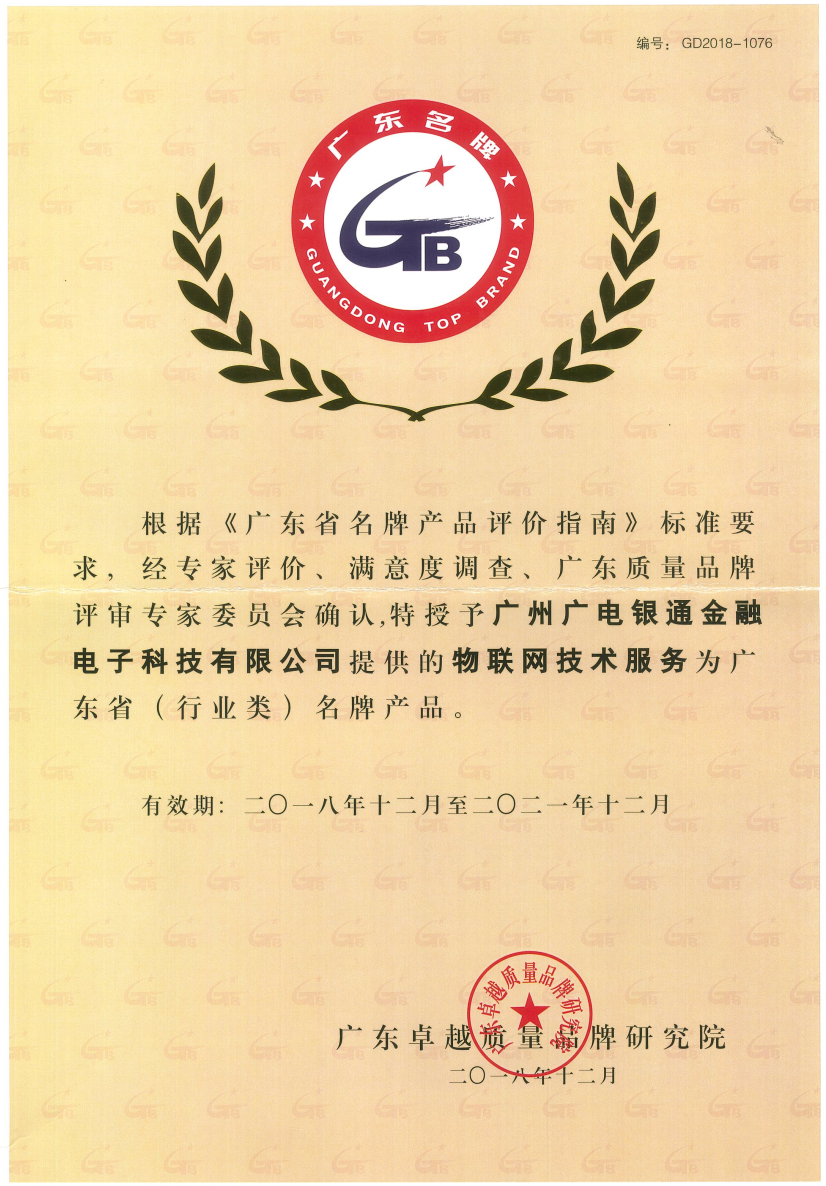 廣東省(行業(yè)類)名牌產(chǎn)品【物聯(lián)網(wǎng)技術(shù)服務(wù)】
