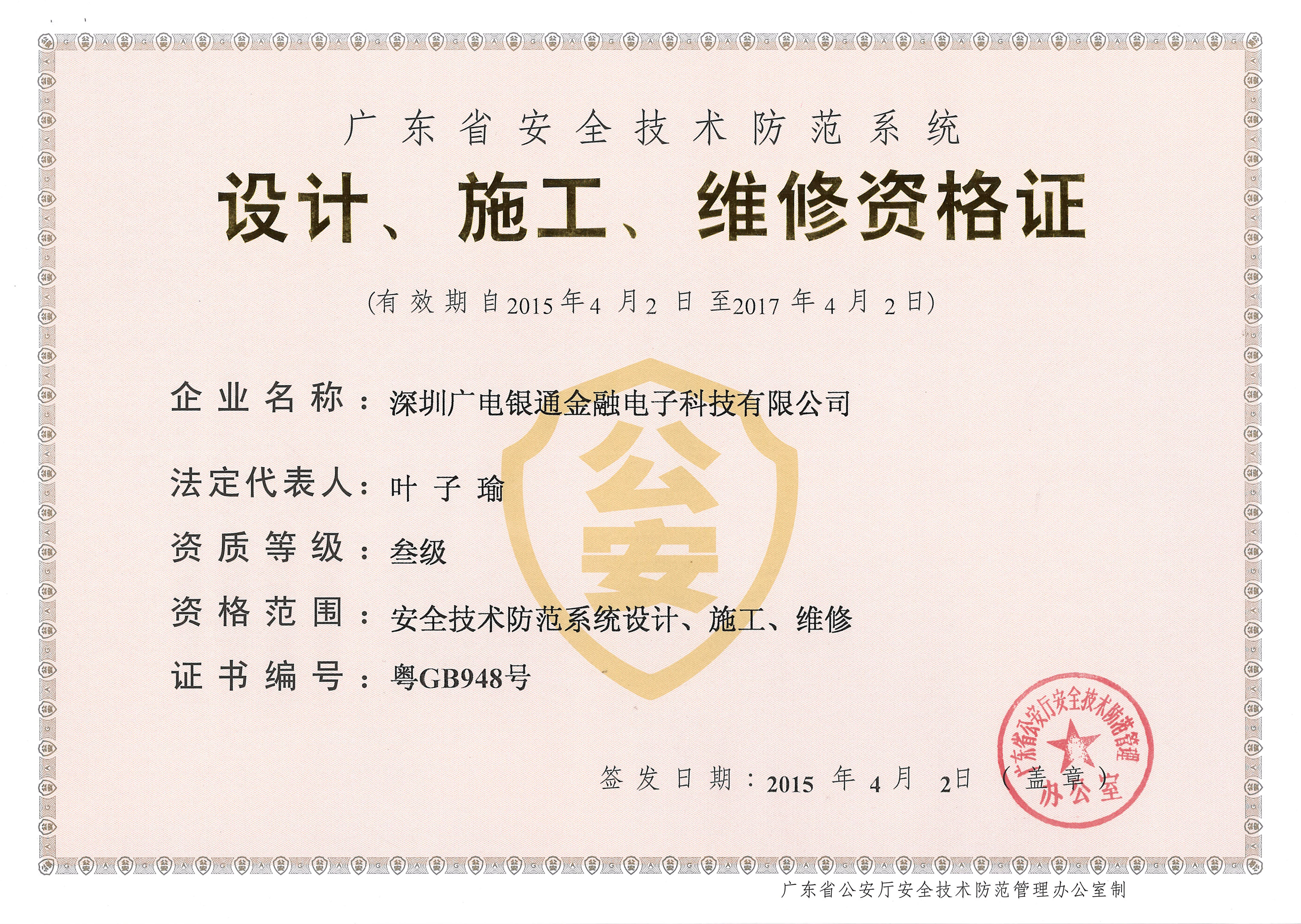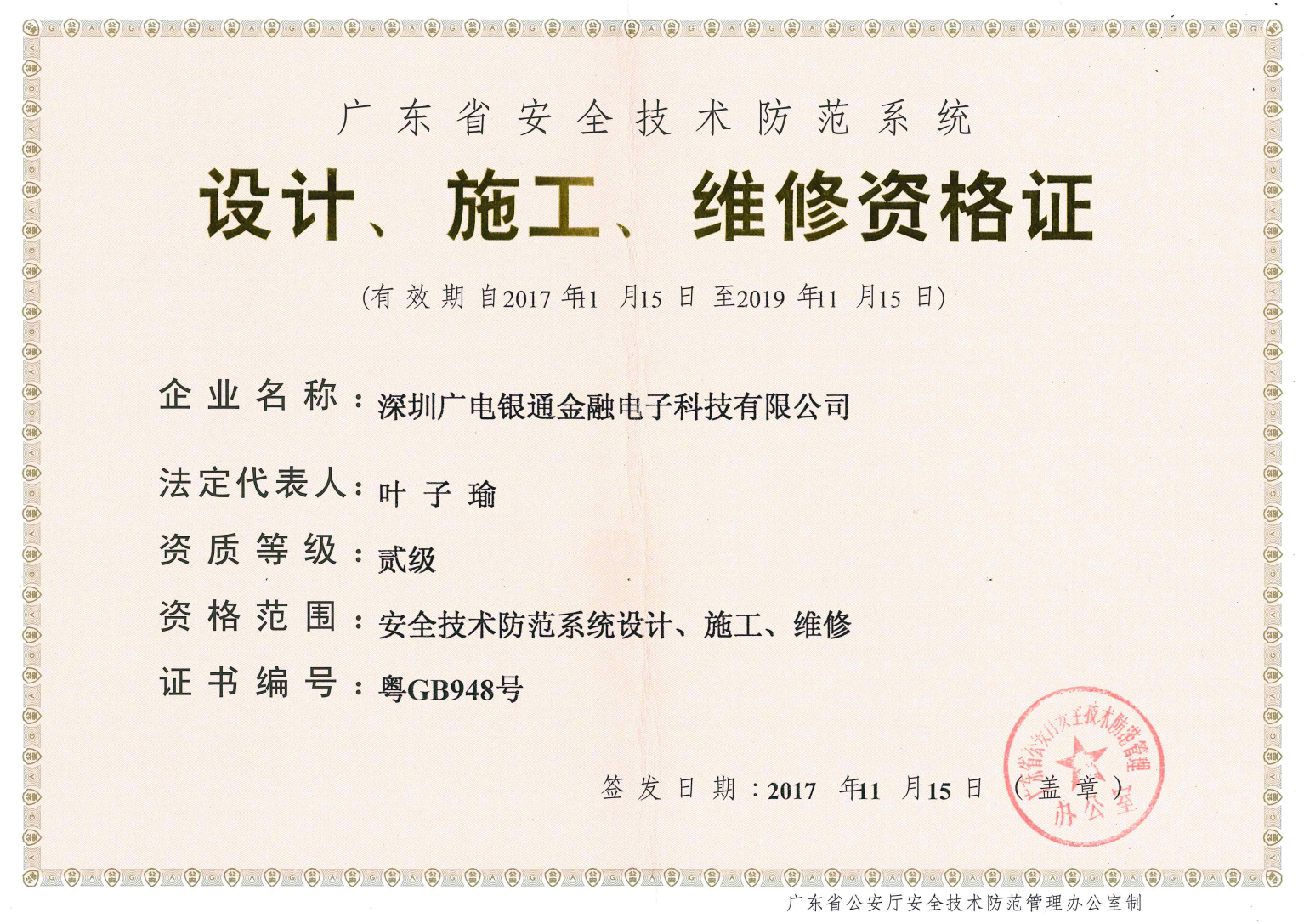 技術(shù)防范系統(tǒng)設(shè)計(jì)、施工、維修資格證二級(jí)-深圳銀通