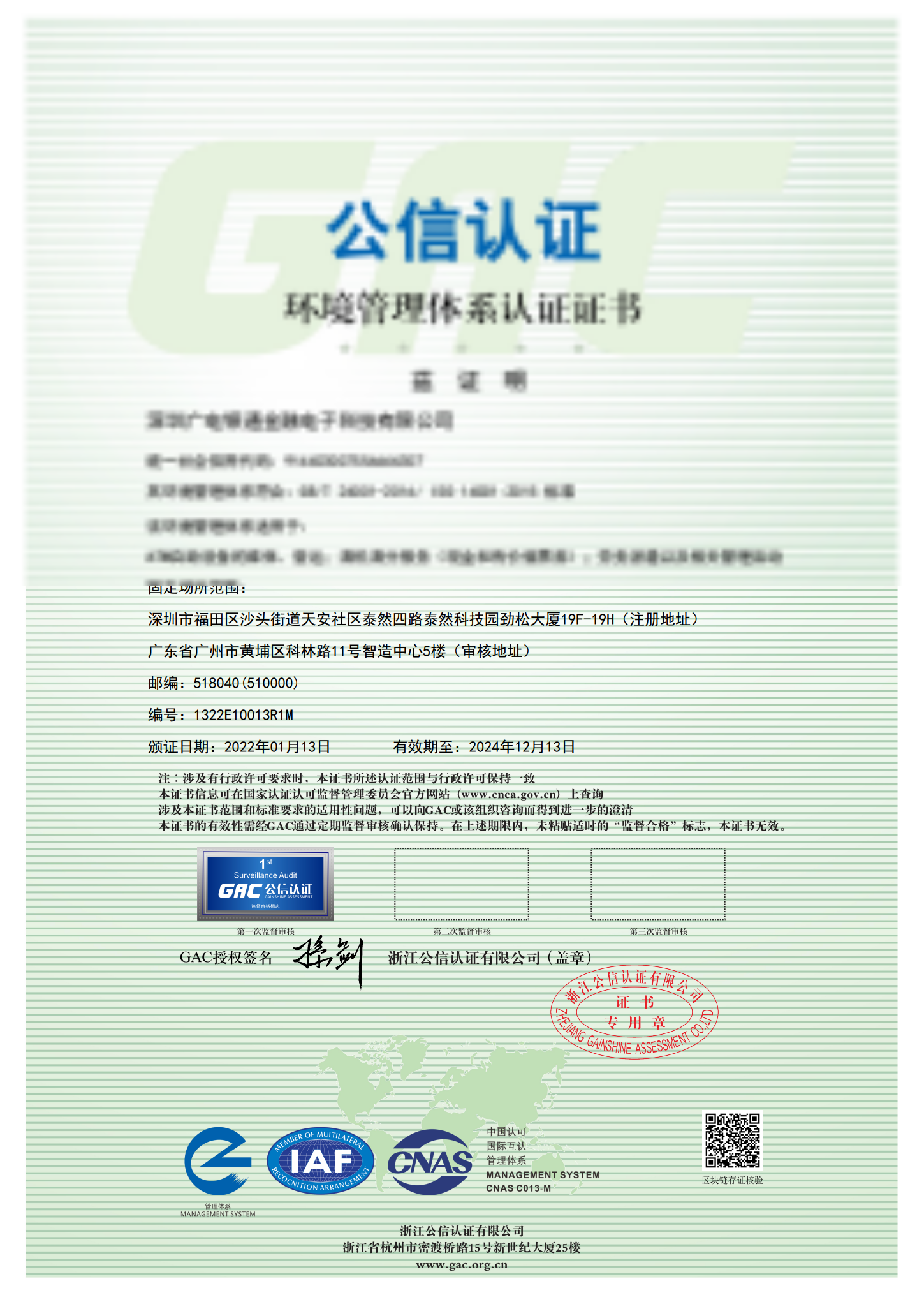 深圳銀通環(huán)境管理體系認(rèn)證證書2023